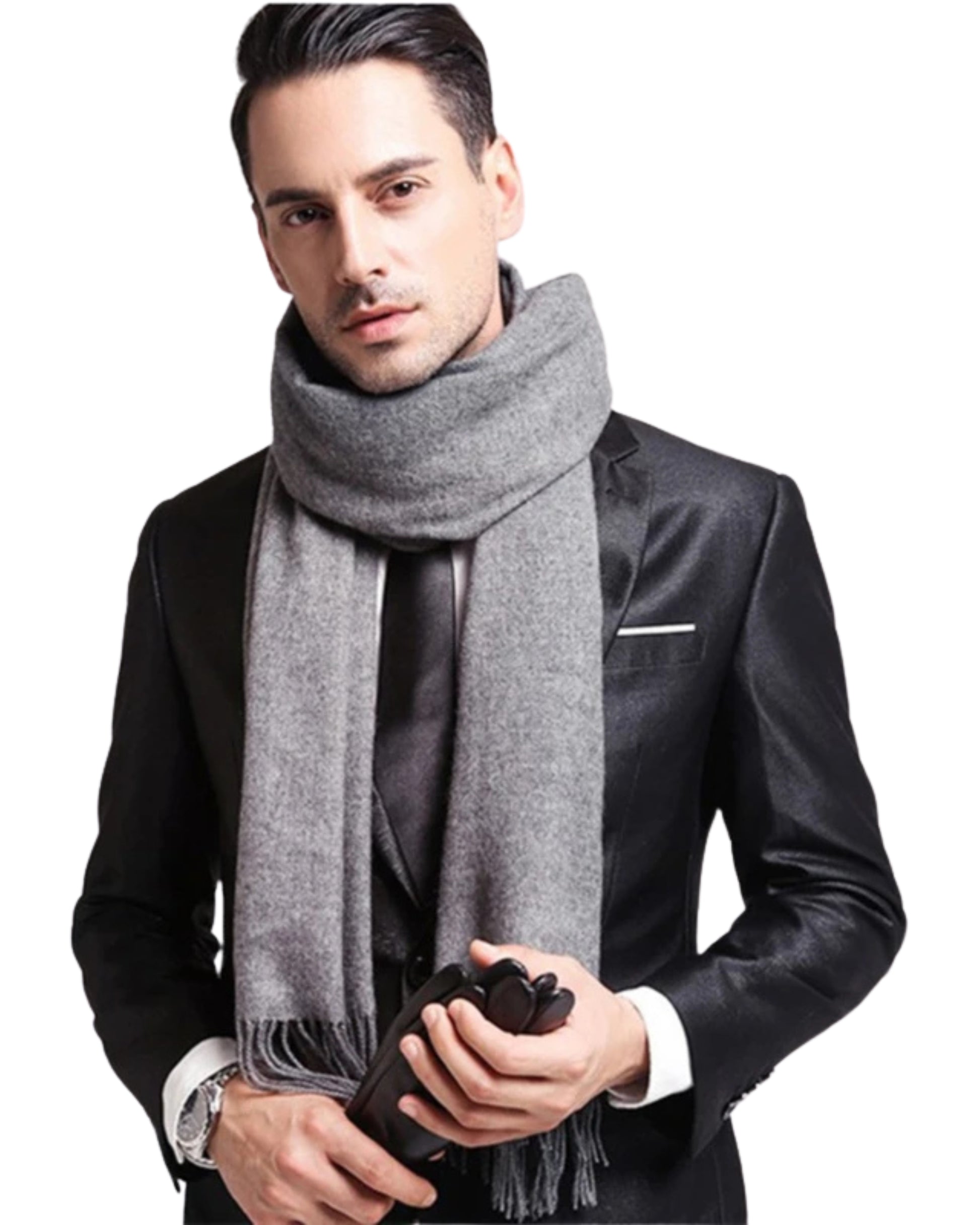 Nosso cachecol em poliéster premium é macio, quentinho e luxuoso — o toque final perfeito para qualquer look.